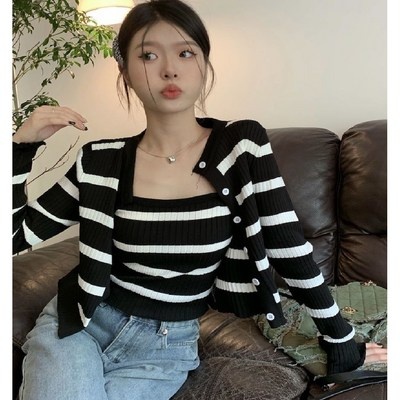 메이리앤 스트라이프 니트 나시 가디건 투피스 세트 5종