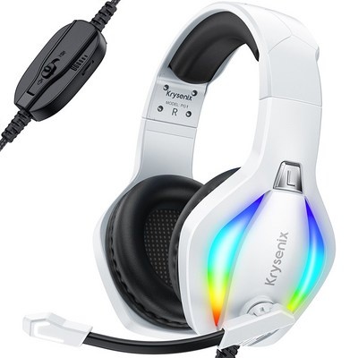 Krysenix 게이밍 헤드셋 pc 유선, PG2, 화이트 블랙