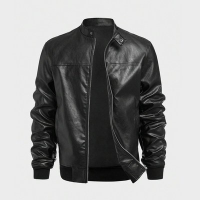 남성용 스탠드 칼라 가죽 재킷