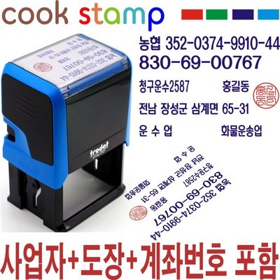 쿡스탬프 사업자 자동스탬프+도장+계좌번호포함 운수업 영업용 만년스탬프 도장 명판 고무인