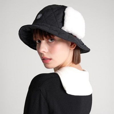 테크스킨 여성용 이어머프 패딩 버킷햇 골프모자, 블랙, 1개