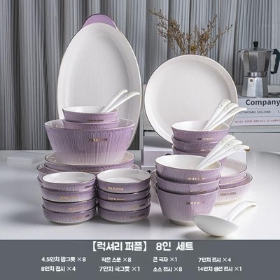 럭셔리 그라데이션 퍼플볼 접시 세트 가정용 프랑스식 식기 골자기 수저 도자기, 1개