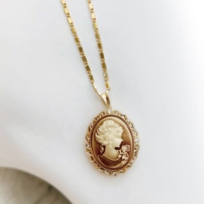 [다섯가지 주얼리] 여성 브라운 까메오 엘리자베스 레이스 옐로우골드 펜던트 목걸이