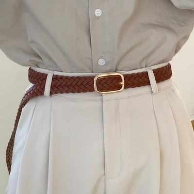 샤콘 여성용 꽈배기 레더 벨트 / 트위스트 꼬임 메쉬 위빙 레더 가죽 허리띠