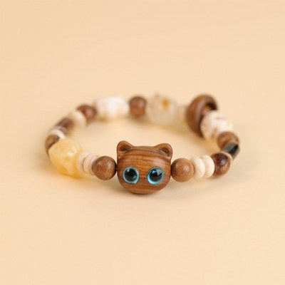 오누이디스플레이 고양이 염주 불교 묵주 합장주 패션 나무 구슬 귀여운 팔찌