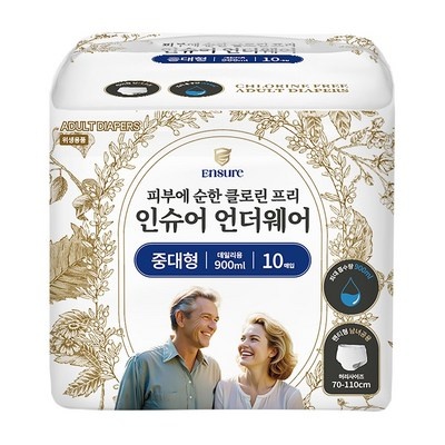 [런칭특가] 인슈어 언더웨어 성인용기저귀 팬티형 데일리용 900ml 10매