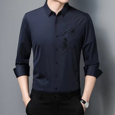 런런피티 남성 고탄력 구김없는 스판 셔츠 슬림핏 라틴 셔츠 캐주얼 셔츠 아빠 남방 봄 가을