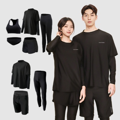 오로라선데이 올블랙 래쉬가드 남녀 루즈핏 빅사이즈 무지 체형커버 비치웨어 남성 3종 여성 5종 세트