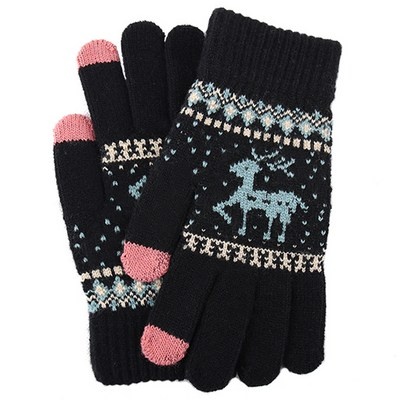 소리달 여성용 나트 사슴 노르딕 패턴 기모 터치기능 겨울 장갑