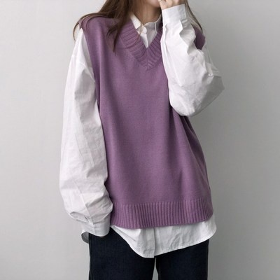 KDNC 루즈핏 니트조끼 여성용 브이넥 니트베스트