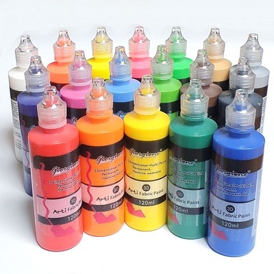 염색물감120ml 18가지 칼라 모음 / 기본12색 형광4색 메탈릭2색 대용량 패브릭 공예물감 천염색 캔버스천 섬유물감 섬유공예 그리기 꾸미기재료 신발염색 모자염색