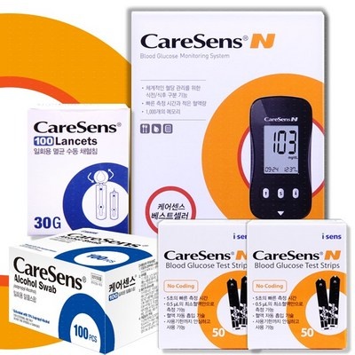 케어센스N 혈당측정기+시험지100매+채혈침100+알콜솜100