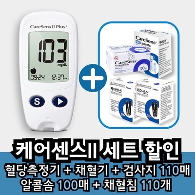 케어센스 혈당측정기 + 시험지 110p + 알콜솜 100p + 채혈침 110p + 채혈기