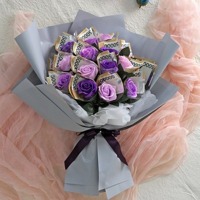 뷰티풀데코센스 조화 비누꽃 돈 꽃다발 20송이 + 쇼핑백 세트
