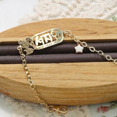 18K 스타쥐 미아방지 아기 이니셜 돌 백일 팔찌 금 쥐 띠 유아동 BN449
