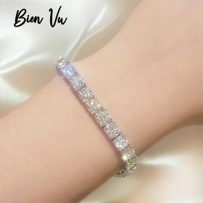 모이사나이트 테니스 팔찌 랩 다이아 럭셔리 925 실버 라운드 직사각형 다이아몬드 여성 결혼 선물 핸드 러브