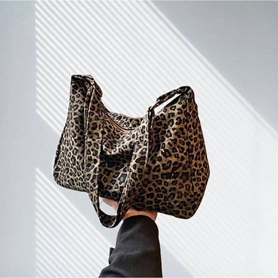 무니유유 데일리 대용량 호피무늬 레오파드 캔버스 에코백 숄더백