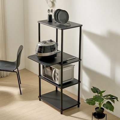 가구레시피 조립식 스마트 밥솥다이 수납 렌지대, 퓨어블랙, 4단