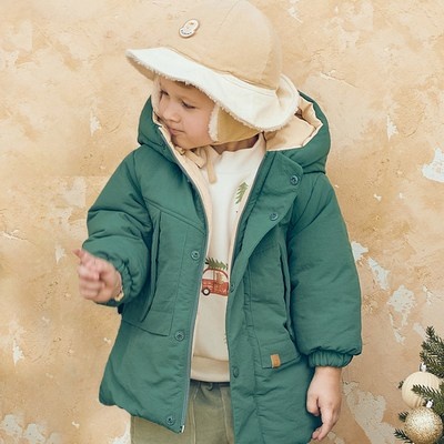 [아가방] 강남점* 패딩 충전재로 보온성이 좋고 가벼움 / 예쁜 진녹색과 밝은 베이지색을 기분 따라 선택할 수 있는 헤비다운 리버시블 점퍼