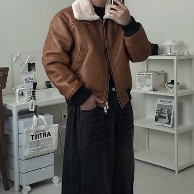 르위 하이넥 밍크털 레더 무스탕 가죽점퍼 오버핏 빅사이즈