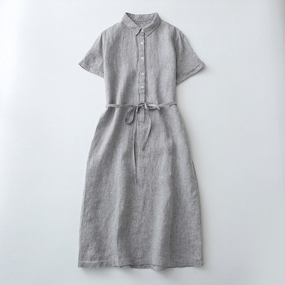 POMTOR여성용 여름 린넨 허리끈 반팔 원피스