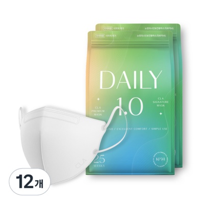 CLA 코리아 데일리 보건 컬러 새부리형 마스크 어린이용 KF94, 25개입, 12개, 화이트
