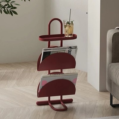 OnB 오브제 매거진 랙 트롤리 3단 인테리어 철제 수납 선반, 레드(Red)