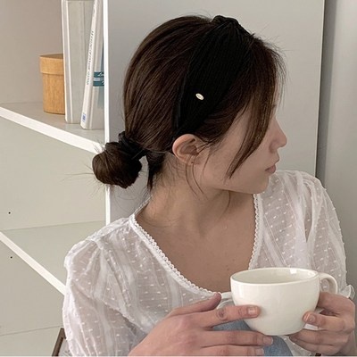 로맨틱모모 패셔너블 넓은 쉬폰 셔링 블랙 여름 헤어밴드