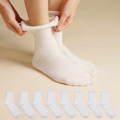 Fahomiss  여성 무압박 발 편한 무지 고밀도 중목양말 8컬레