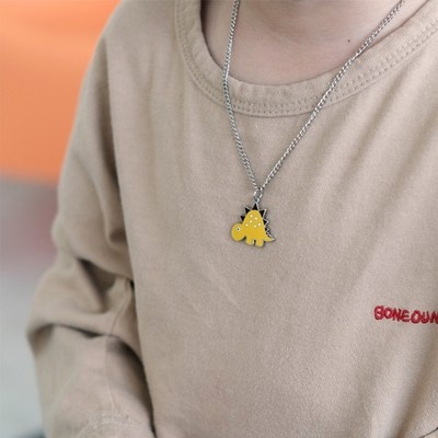 MX KIDS 써지컬스틸 미아방지 공룡 체인 목걸이 212K 옐로우 유아동 키즈 각인 어린이, 1개, 볼체인 S