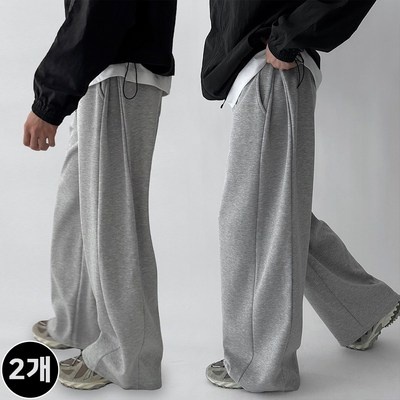 [기획상품,1+1] 두장묶음 빠델 사이드핀턱 벌룬 와이드 트레이닝 스웻 커브드 팬츠 회색 트레이닝팬츠