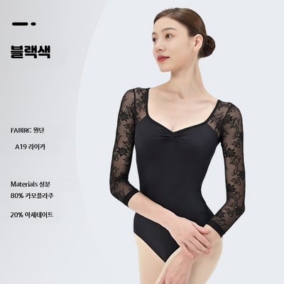 여성 성인 발레댄스 의상 레이스 V넥 점프수트 긴팔 공연 예술적 무용복 개성 있는 스타일 메쉬 스플라이싱 취미 발레복