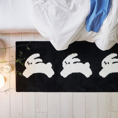 쁘리엘르 보들보들 자카드 미끄럼방지 키친 욕실 발매트, 버니블랙
