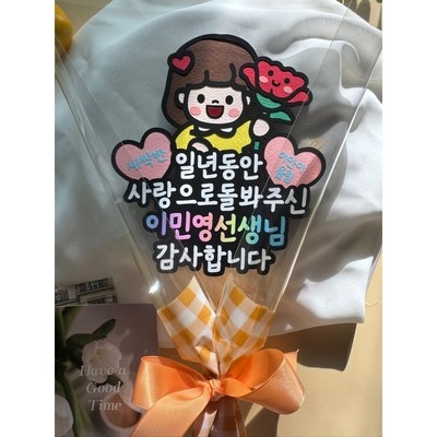 유치원 어린이집 선생님 수료식 졸업식 축하 꽃다발 선물 문구 글자 토퍼 주문 제작 맞춤 레몽스튜디오