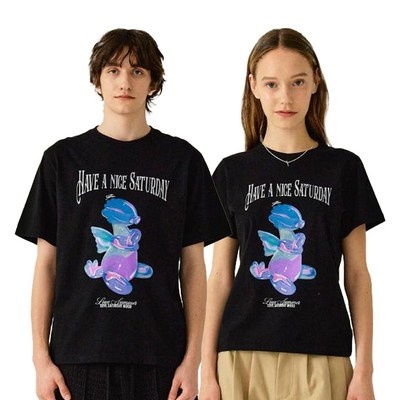 세터 남녀공용 통기성 블루 드래곤 벌룬 그래픽 반팔 티셔츠
