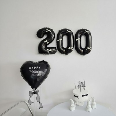 레몬스튜디오 (자유레터링스티커 )아기셀프촬영 블랙포토존 리본장식 숫자풍선세트