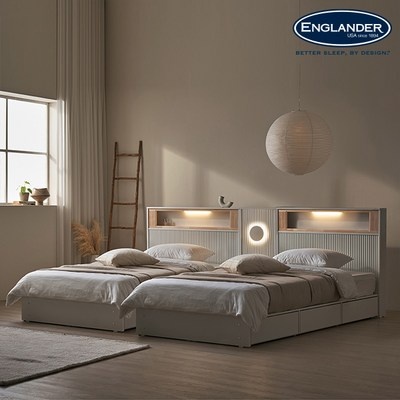 잉글랜더 세인트 전체 도장 호텔 LED 수납 침대 트윈 수납 침대+협탁1EA(Easy 포켓스프링 매트리스-SS+SS)