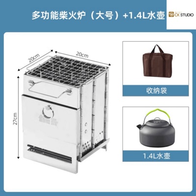 야외 장작 화로 휴대용 접이식 캠핑 장비 소각대 스테인리스 스틸 물 끓이기 스토브 그릴 소로
