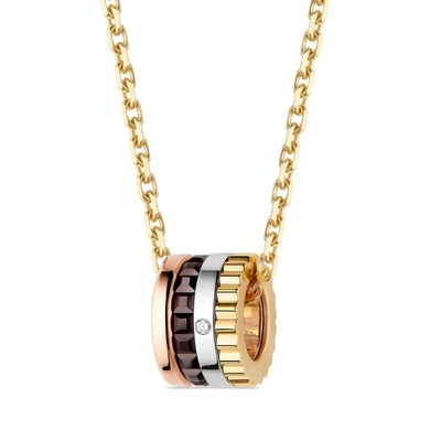 부쉐론 콰트로 블루 18K 옐로, 화이트 앤 로즈 골드 다이아몬드 미니 링 펜던트 네크리스