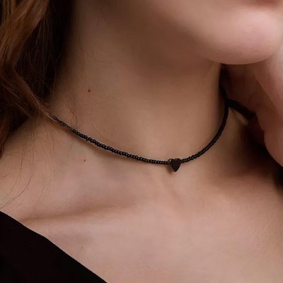 러블리한 하트 포인트 블랙 비즈 쇄골 체인 목걸이