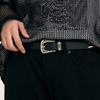 웨스턴벨트 슬림 소가죽 벨트 남자 실버 버클 미니멀 허리띠 L74