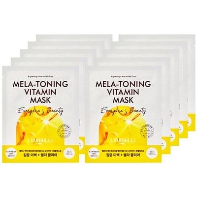 링키빌리 멜라 토닝 비타민 미백 마스크 팩 1개입, 10개, 기미 잡티 멜라제로 쿨링 색소침착 마스크팩, 10개, 1개입