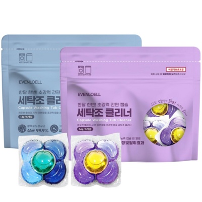 1+1 초강력 캡슐 세탁조 크리너 클리너 고농축 드럼 통돌이 세탁기통세척 세탁기세척 세탁기통세척제 세정제 밤쉘향+머스크향 이브앤로엘, 12개, 14g