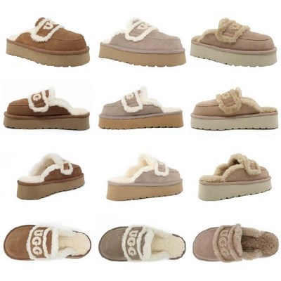 호주 어그슬리퍼 여성 겨울 사무실 천연 양털 시어링 통굽 플랫폼 슬리퍼 신발 드림메리노