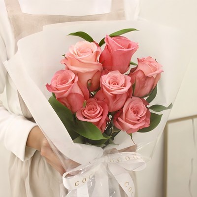 [로켓프레시] 코코도르팜 생화 장미 꽃다발, 핑크 장미