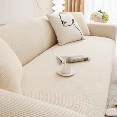 [먼지 없는] 커버무드 고탄력 와플 소파커버 + 자체제작 고정 스펀지, 아이보리, 1개