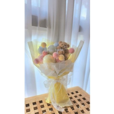 인형 솜사탕꽃다발 발표회 졸업식 솜사탕 꽃다발 초등학생 재롱잔치, 8구/ 꽃 폼폼/ 포장컬러 옐로우