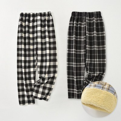 LUNAPOLI 1+1 양털 체크 밴딩바지 수면바지 커플잠옷 수면잠옷 겨울잠옷 여성잠옷 잠옷바지