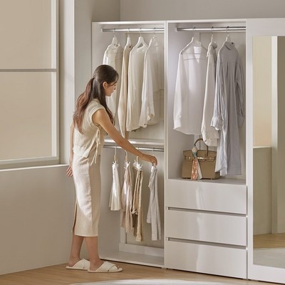 (10만원 즉시할인) 홈리 심플리 화이트 드레스룸 시스템 헹거 800 3단 서랍 행거 옷장세트 싱글장 원룸옷장 장롱