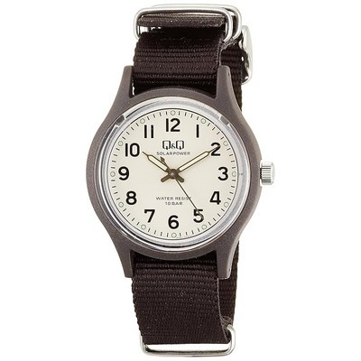 시티즌 Q&Q 아날로그 태양 시계 10 기압 방수 나일론 벨트 E05A-005VK 남성 브라운